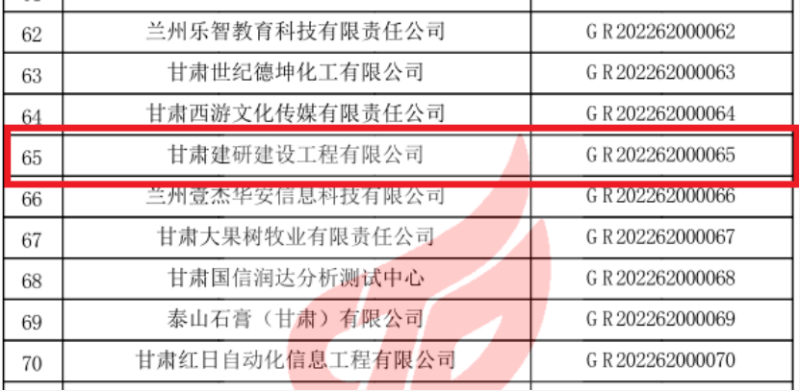 近日,國家高新技術企業認定管理工作領導小組辦公室發布了甘肅省認定機構2022年認定的第一批高新技術企業備案公告,建研建設公司位列其中,成功通過了國家高新技術企業復審。