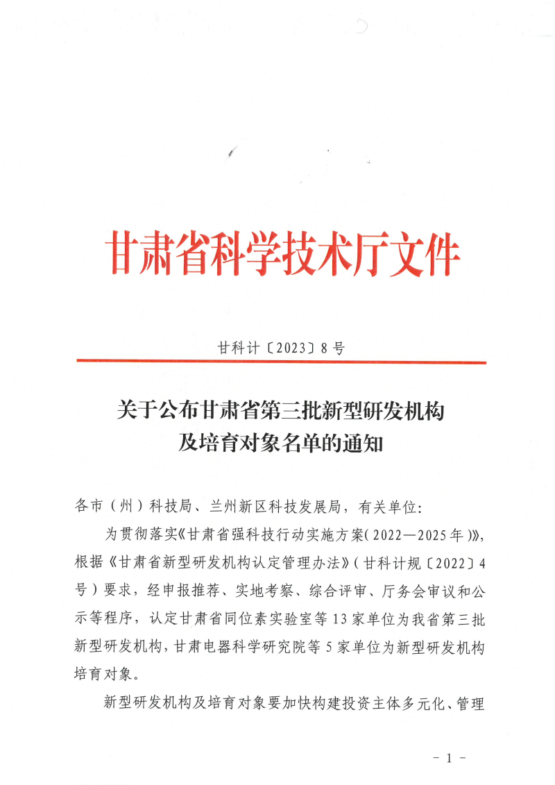 據了解,省級“新型研發機構”是指在甘肅省內注冊并運營,聚焦科技創新需求,主要從事科學研究、技術創新和研發服務,投資主體多元化、管理制度現代化、運行機制市場化、用人機制靈活的獨立法人機構。