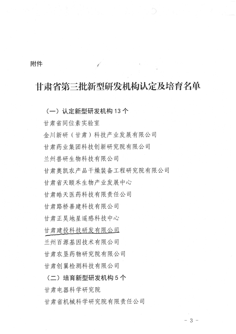 近日,甘肅省科技廳公布了全省第三批新型研發機構及培育對象,全省共有13家單位通過認定,甘肅建科院科技研發公司榜上有名。這也是甘肅建投系統內首個被認定為省級研發機構的單位。