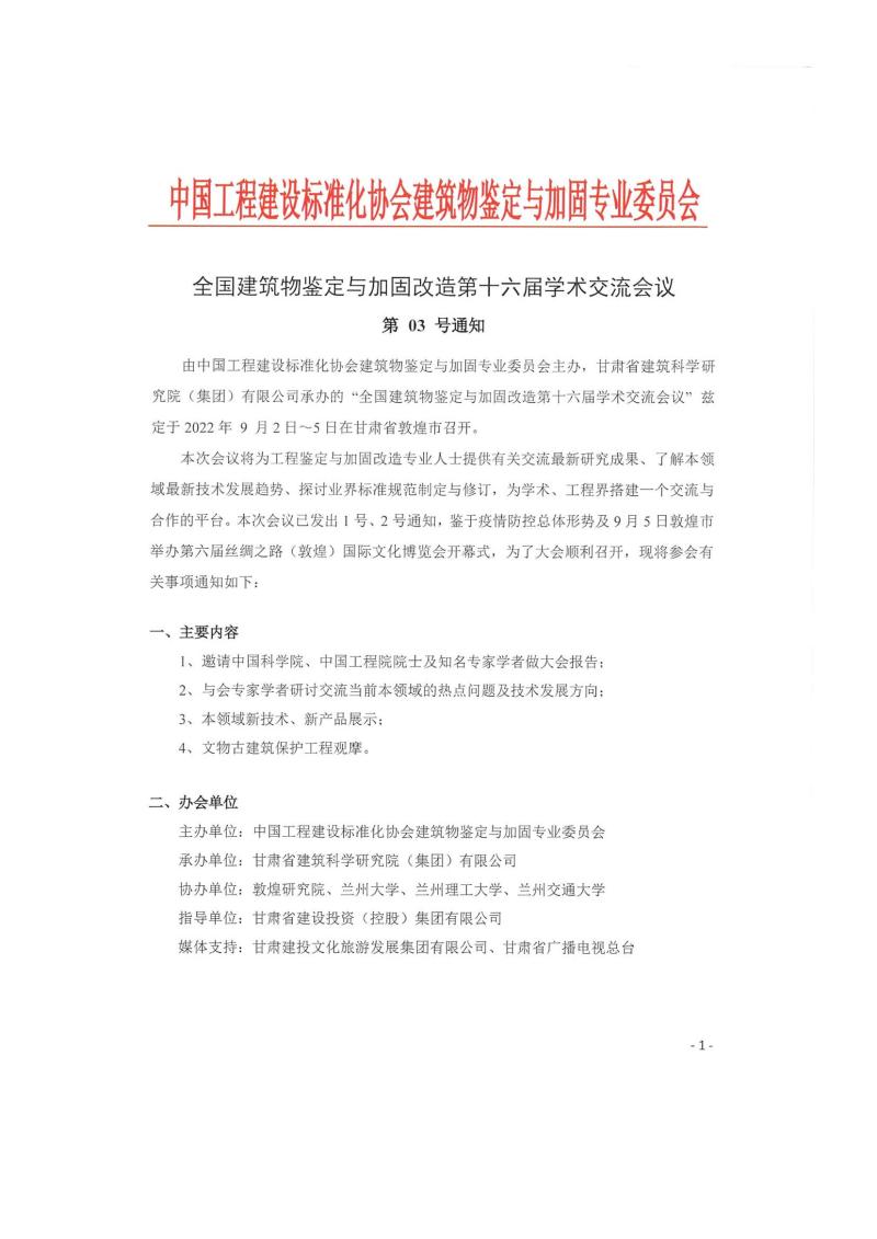 全國建筑物鑒定與加固改造第十六屆學術交流會 03號通知
