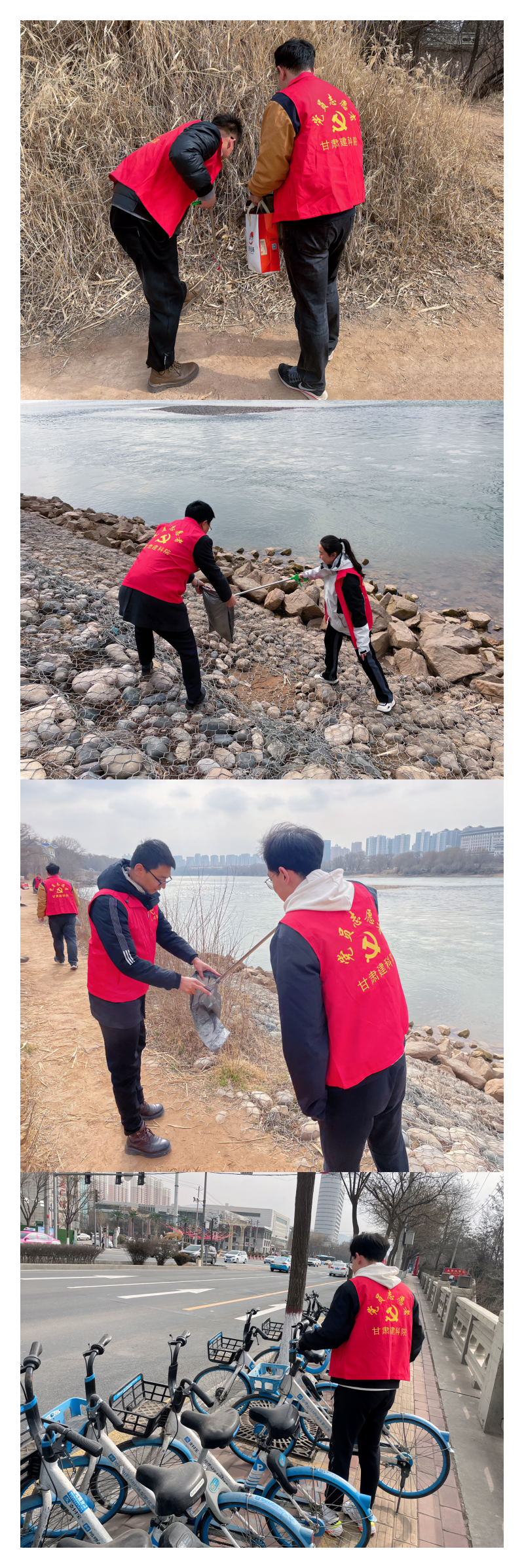 活動中,黨員志愿者們身穿紅馬甲,手持清掃工具對丟棄在黃河邊的煙蒂、塑料袋、飲料瓶等垃圾進行地毯式搜尋和清理,并對亂停放的公共自行車進行整理,點點紅色身影成為黃河邊一道道最美風景線,志愿者們以實際行動詮釋新時代雷鋒精神的豐富內涵和時代價值。活動的開展不僅營造了整潔、干凈的環境,也傳遞了“雷鋒精神就是奉獻精神”的理念,使大家從時代先鋒身上汲取奮進力量,督促黨員提高思想覺悟與實踐能力。