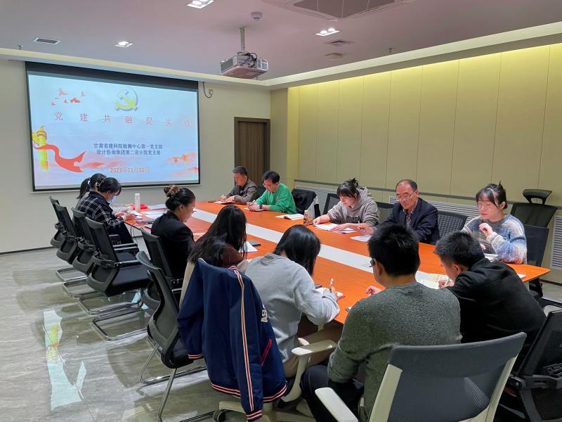為深入開展學習貫徹習近平新時代中國特色社會主義思想主題教育,進一步推動黨員干部深刻領會“三抓三促”行動重要意義,提升黨建工作水平,加強黨建和生產經營融入融通融合,實現黨組織優勢互補,11月10日下午,甘肅建科院檢測中心第一黨支部與甘肅省建設設計咨詢集團有限公司第二設計院黨支部開展“黨建共融促實效”黨建聯學聯建主題黨日活動。雙方單位黨員代表、業務骨干代表共同參加了活動。