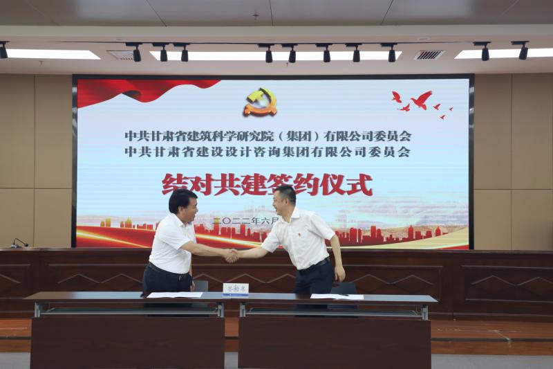 張永志表示,建科院(集團)公司與設計咨詢公司在甘肅建投戰略布局中均屬于科研板塊、技術服務類單位,為更好地發揮兩個公司的科技支撐作用,傳承甘肅建投的榮譽和血脈,雙方秉承“黨委領導、基層落實、業務協同、共同提高、攜手共贏”的黨建結對共建模式,遵循“平等共建、相互學習、互通信息、互利雙贏”的基本原則,將以更加緊密的合作方式做到優勢互補、信息共享、互利雙贏,共同努力構建高質量發展的新平臺、新機制,提升戰略協同層次、水平和創新能力,廣泛開展更多領域、更多層次的合作,為“再造一個甘肅建投”戰略目標提供技術支撐,為甘肅建投打造科研黨建聯盟發揮力量。