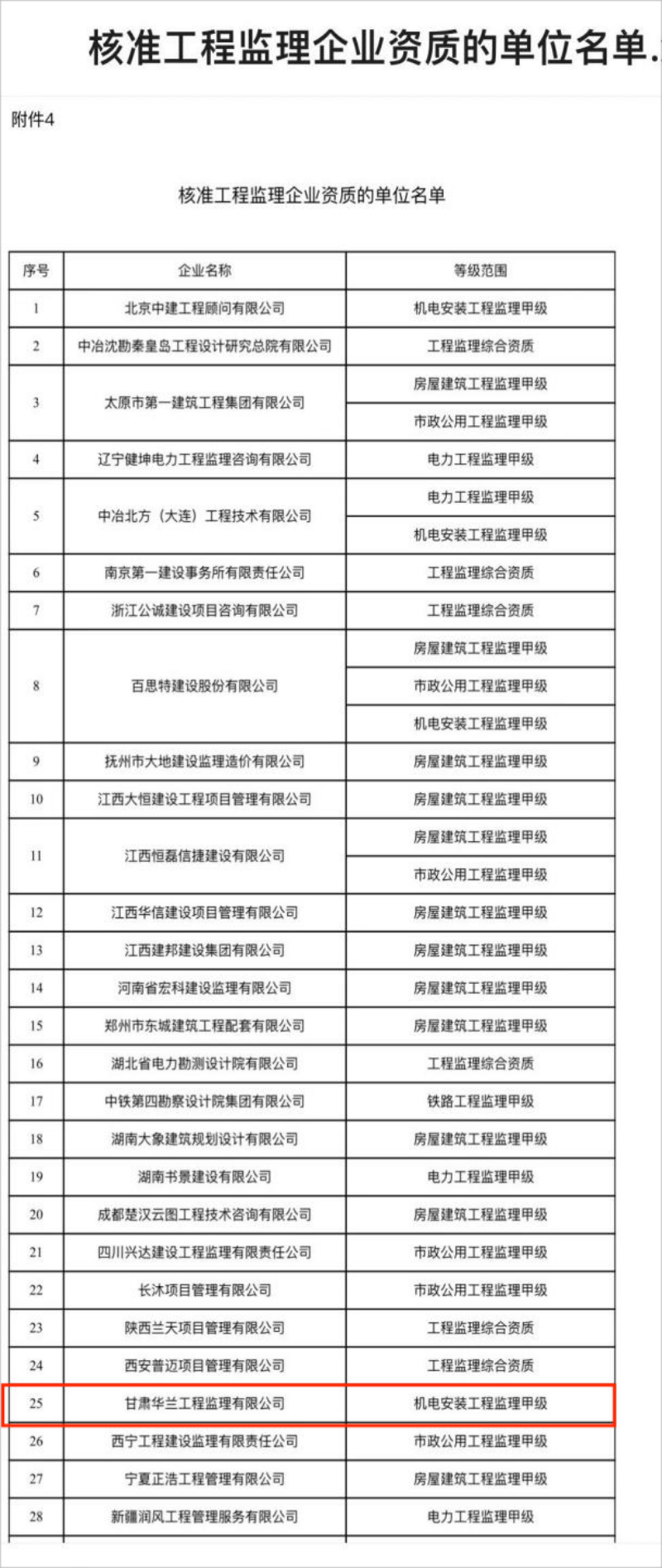 2023年新年伊始,甘肅建科院全資子公司華蘭工程監理有限公司近日成功取得住房和城鄉建設部頒發的機電安裝工程監理甲級資質。