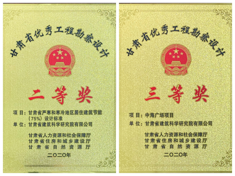 9月,2020年度甘肅省優秀工程勘察設計獎評選結果正式公布,建科院(集團)公司申報的項目摘獲2個獎項。其中,科技研發中心申報的《嚴寒和寒冷地區居住建筑節能(75%)設計標準》項目榮獲二等獎(標準類),這是繼2010年以來又一次獲獎,并且獲獎等級提升為二等獎,同時也是第一次以標準類項目獲獎,實現了建科院科技工作上新的突破。勘察研究所《中海廣場項目》喜獲2020年度甘肅省優秀工程勘察設計獎勘察類三等獎。