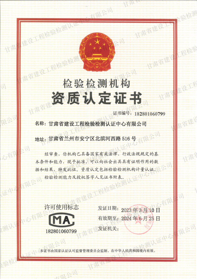 近年來,甘肅建科院以提升核心競爭力為導向,以強化戰略管理、優化產業板塊、完善激勵約束為抓手,聚焦重點難點,補齊短板弱項,堅持檢驗檢測、咨詢服務、特種施工、產業產品并行的“1+N”發展模式,提升了企業的核心動能。成立建設工程檢驗檢測認證中心公司是做精檢測、做優服務的重要措施之一。該公司已獲得甘肅省市場監督管理局核準頒發的檢驗檢測機構資質認定證書和甘肅省住房和城鄉建設廳頒發的建設工程質量檢測機構資質證書。