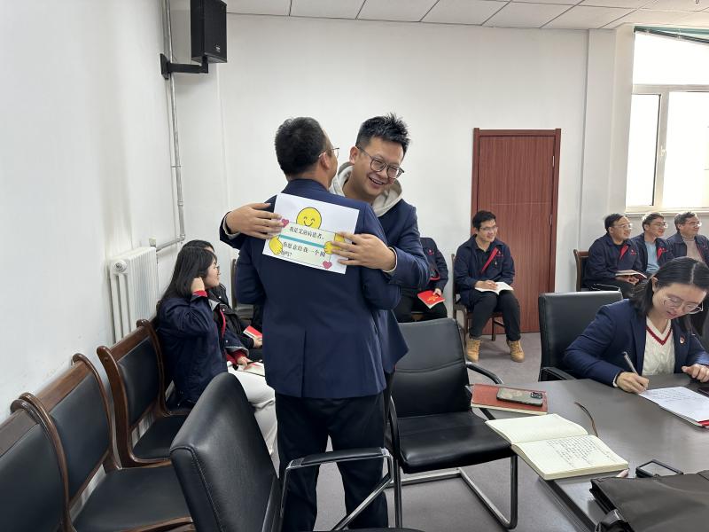 活動中,支部還舉辦了“跨越偏見,擁抱有愛”活動,鼓勵黨員職工向艾滋病患者或攜帶者表達愛意和關系。參與活動的黨員職工互相扮演艾滋病患者,尋找他人給予擁抱,希望通過擁抱,以實際行動打破對艾滋病患者得到歧視和偏見,讓更多人了解并接納他們。