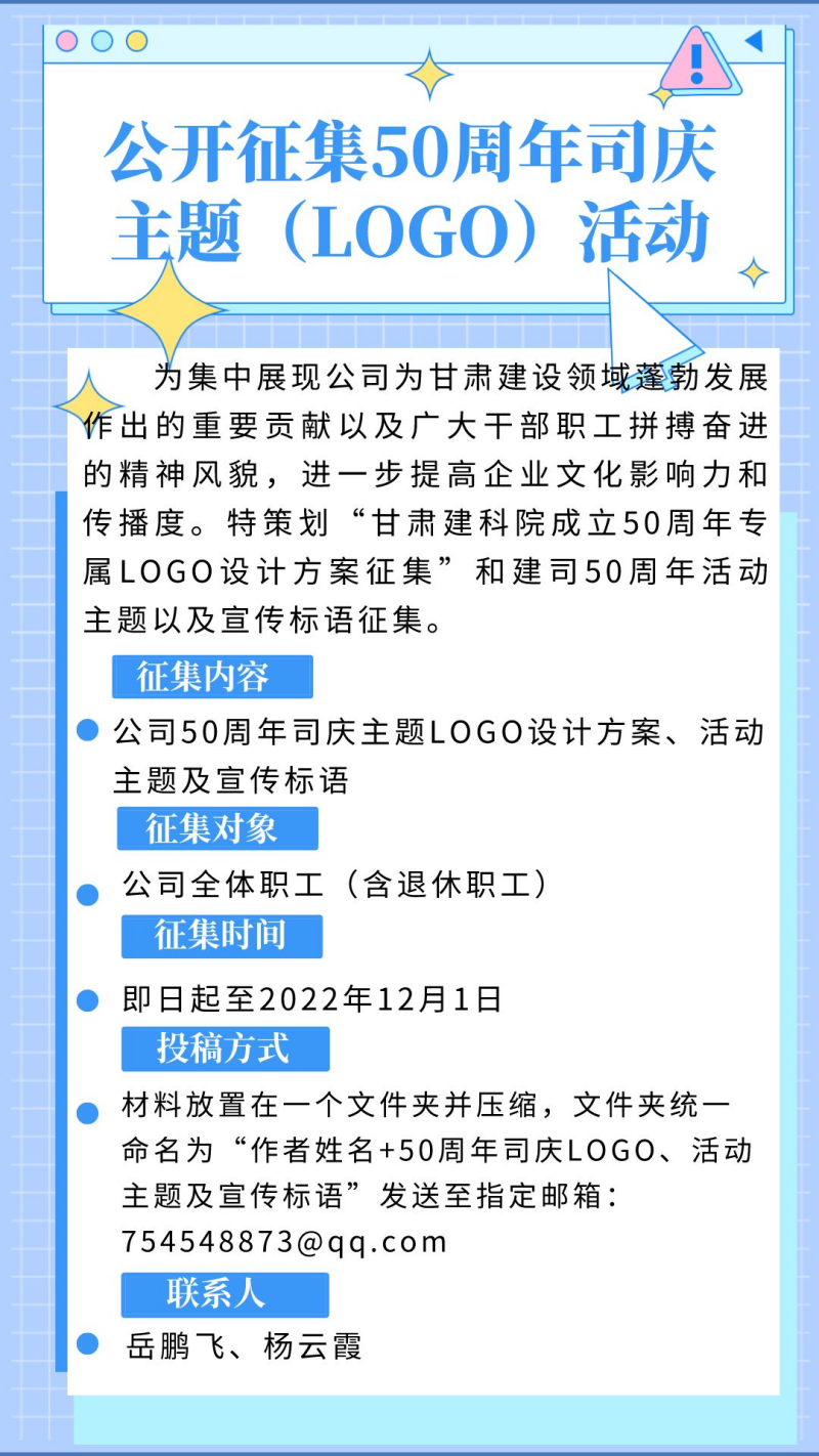 征集令|@所有人:甘肅建科院50周年司慶主題LOGO征集活動開始啦!