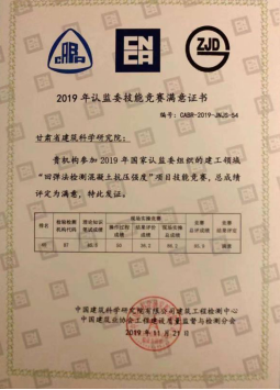 日前,建科院結構所參加國家認證認可監督管理委員會組織的首屆“全國建工檢驗檢測領域回彈法檢測混凝土抗壓強度技能競賽”,為建科院贏得“2019年認監委技能競賽滿意證書”。此次競賽結果已計入建科院參加能力驗證的記錄,兩年內免于相關檢測項目的資質認定及現場評審。