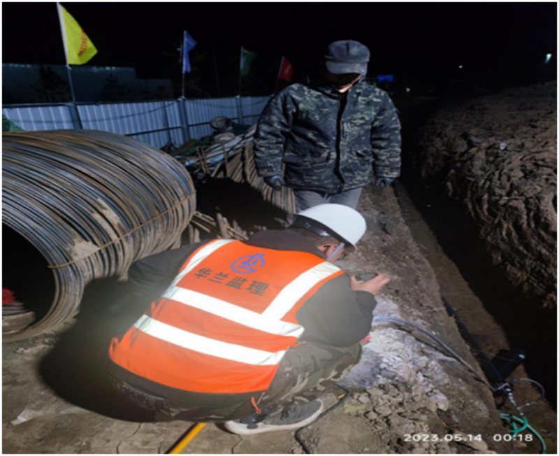 為按時高質量高標準完成好項目建設,監理公司第五事業部項目監理人員任勞任怨,主動服從工作安排,不分晝夜、加班加點地奮戰在監理工程的施工一線。認真對進場作業人員進行安全教育培訓核查、個人防護用品配備、機械設備性能檢查、安全工器具試驗及檢驗合格情況排查。嚴格履行巡視、平行檢驗、見證取樣及旁站監理職責,嚴把材料、機械、設備進場準入關,嚴控施工質量等關鍵工序。為了確保項目的工期,組織施工單位倒排施工進度計劃,要求施工單位每天安排作業人員三班倒,并對當日作業人員數量及工作完成量進行嚴格監督。如有不滿足進度計劃要求的情況,監理部下發監理通知單、監理處罰單,并及時上報建設單位及松鳴巖大中小學生勞動實踐基地指揮部。同時,要求施工單位采取措施,按計劃要求完成當日工程量,確保項目能夠按時完成。
